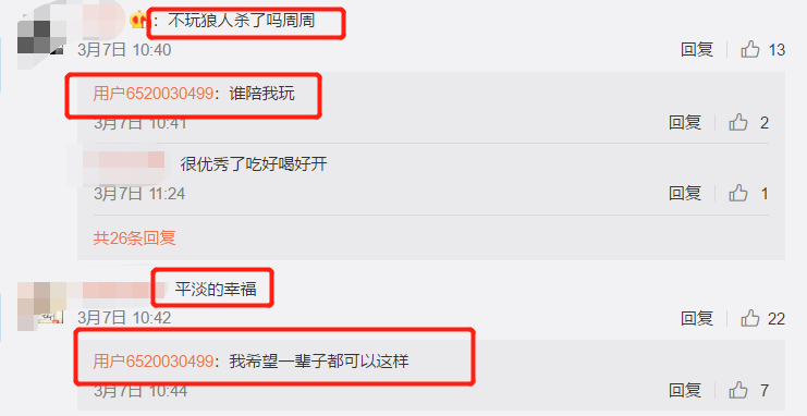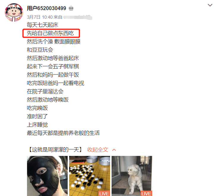比如周扬青目前作息时间大变,透露早睡早起后给自己做东西吃,然后陪父母休闲。在被问到“不玩狼人杀吗?”她也有些落寞地反问“谁陪我玩?”还表示自己希望能一辈子这样生活。