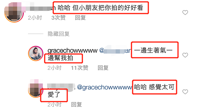 在周扬青晒出美照后,粉丝网友纷纷前来评论。有网友表示“但小朋友把你拍的好好看”,周扬青则回答:“一边生着气一边帮我拍”。有网友猜测这个“小朋友”是不是指罗志祥。