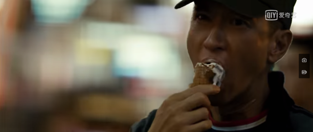 在《大追捕》里,影片一开场,张家辉站在商业广场上,看着人来人往的年轻女孩,歪头啃一只快要化了的冰淇淋。