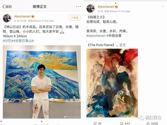 分享的生活日常,也多是画作、艺术展相关。