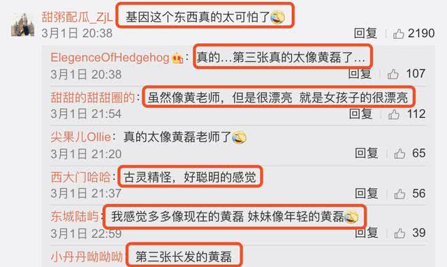 网友们看后除了赞美妹妹人儿的盛世美颜之外,都在感慨“基因这个东西真的太可怕了”,表示第三张照片太像黄磊,但是又很漂亮,看起来古灵精怪、好聪明的感觉。还有网友突然意识到结婚对象好看的重要性。