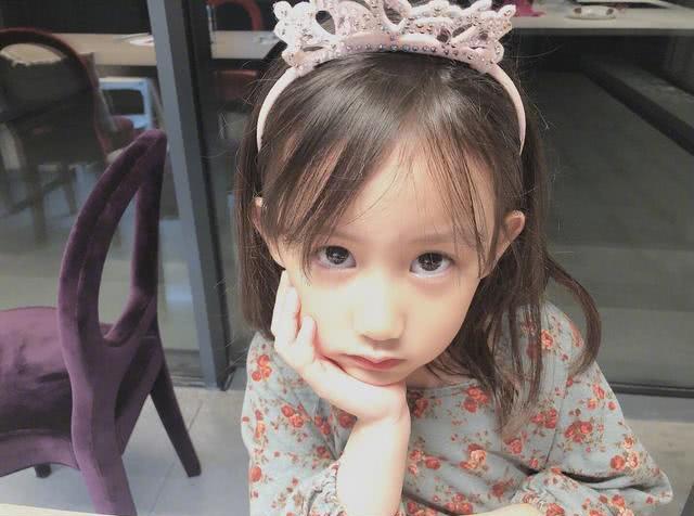 妹妹远拍好看,近照也这么漂亮。小公主趴在桌子上,小手托着腮帮子,睁着一双大眼睛,眼眸清澈单纯,看得人心都要化了。