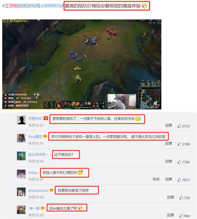 随后,王思聪曾经打游戏的视频被扒出,面对操作失误的队友,王思聪是毫不嘴软直接开骂,甚至脏话连篇,网友们调侃:“最高的陪玩价格给你最极致的臭嘴体验。”