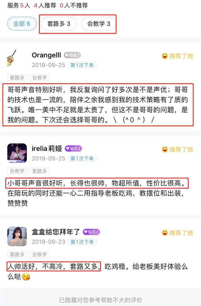 然而在王思聪晒出的这张评论截图中,发现在此前下单找过他陪练的游戏玩家都给出了极高的评价,在下单的5人中,有4人点了推荐,评论都表示王校长声音好听,会教学,技术好,显然没有被骂,而且“顾客反映好极了”,为了生活,王思聪也是能好声好气地陪练啊!