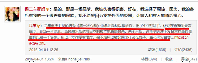 除了被网友实锤外,柯以敏还被同是2007年的重庆卫视一档选秀节目《第一次心动》的评委杨二车娜姆实锤。在《第一次心动》中,两人同台点评,可是评委比选手还热门,频繁引发的骂战让这档节目备受争议。