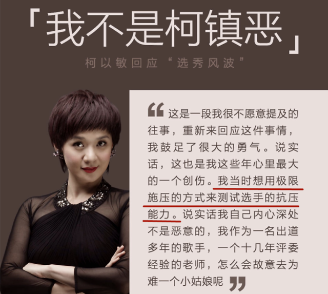不得不说,柯以敏的这些话语、动作、表情……一点儿都没有尊重选手,她所做的这些,早已超出了歌唱比赛评委职责的本身。于是在几年之后,当这些片段被重新扒出来时……柯以敏毫不意外的被骂惨了。