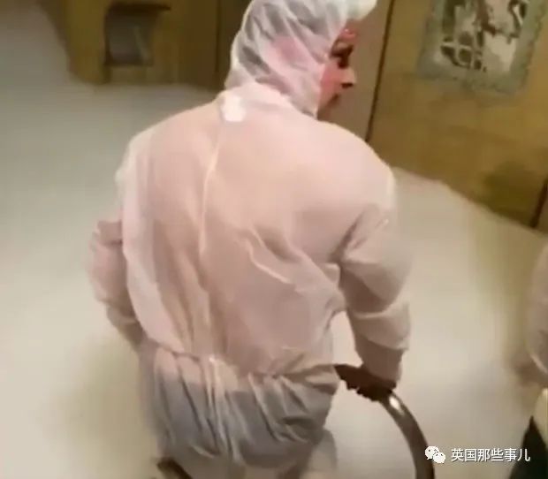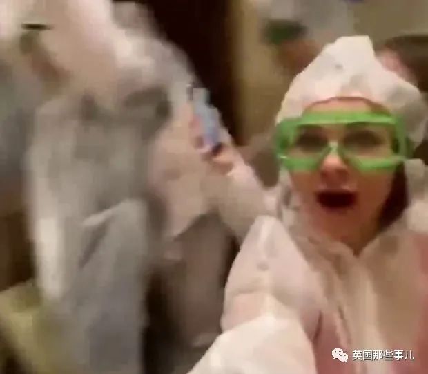 为了防止干冰灼伤皮肤,他还特意穿上了防护服保护自己。