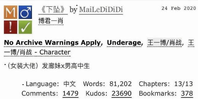 《下坠》的主角明明是王一博和肖战,为何只有肖战粉丝看到文章之后生气?原因很简单,因为在文中王一博就是一个形象极其美好的男高中生,而肖战是一个有性别识别障碍的发廊妹,对于肖战粉丝而言这是在侮辱肖战。
