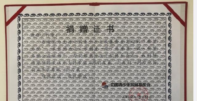 中国青少年发展基金会为表示感谢,对鹿晗工作室颁发捐赠证书表示:“感谢您为支持中国青少年发展基金会发起的‘希望工程’,在贫困地区小学捐建一座‘足球第一课希望工程公益球场’,帮助那里的孩子们快乐成长,我们希望您持续关注并支持希望工程的发展”。