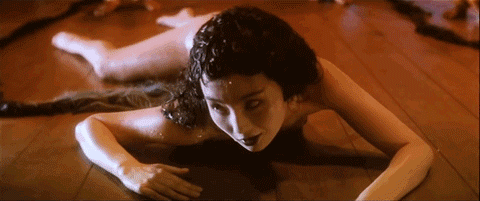 而李嘉欣的颜值条件,不但硬生生地抗住王家卫那往脸上硬怼的超广角镜头,而且还被突显出一种癫狂、病态感,整体画面压抑的能让观众喘不过气。