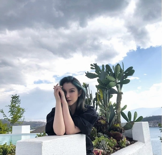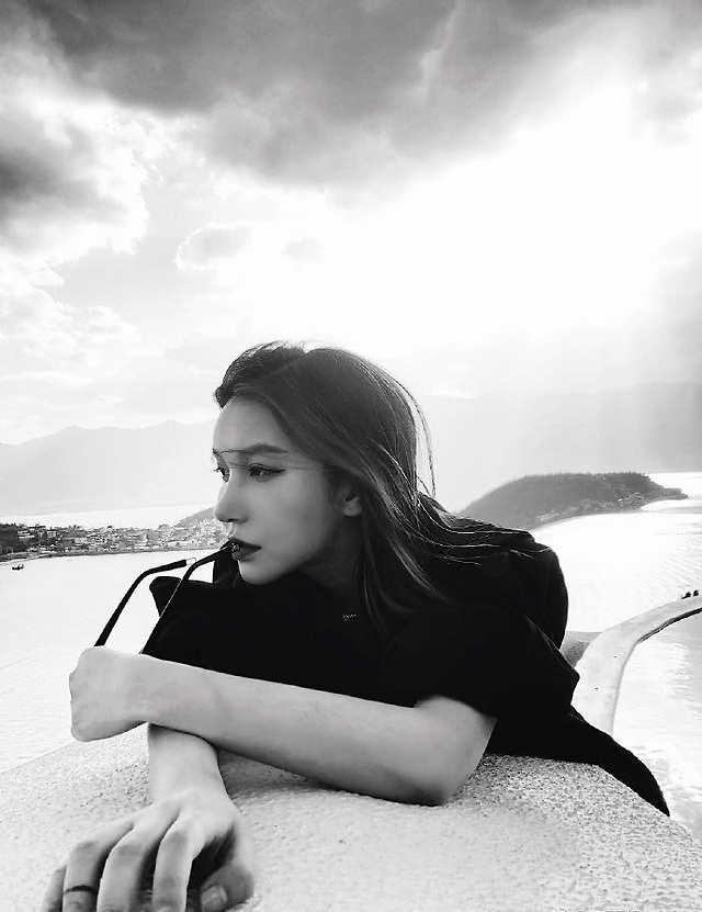 有个会拍照的男友,李雨桐可不浪费,忙在男友视角下凹造型。李雨桐托腮冥思,墨镜遮颊,大红唇吸睛,霸气十足,又冷又艳。