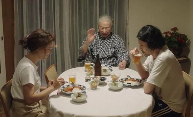 剧照中,久米明Akira KUME身穿一件格子上衣,正在餐桌上吃饭。此时的久米明Akira KUME实际上已经93岁了,头上的头发发白,眼部以及脸上充满皱纹,他用自己的本色出演,将剧中的老人形象彰显得淋漓尽致。这种敬业的精神也得到了很多人的肯定。