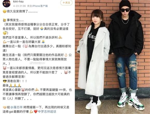 罗志祥的经纪人小霜昨日发文谈及罗志祥周扬青分手事件,称感情分分合合很正常,女方没必要这样。她还呼吁粉丝离艺人舞台近一些,离私生活远一些,不要当键盘侠,不要让事情发酵,否则就如人所愿了。清者自清,给罗志祥时间缓冲一下。