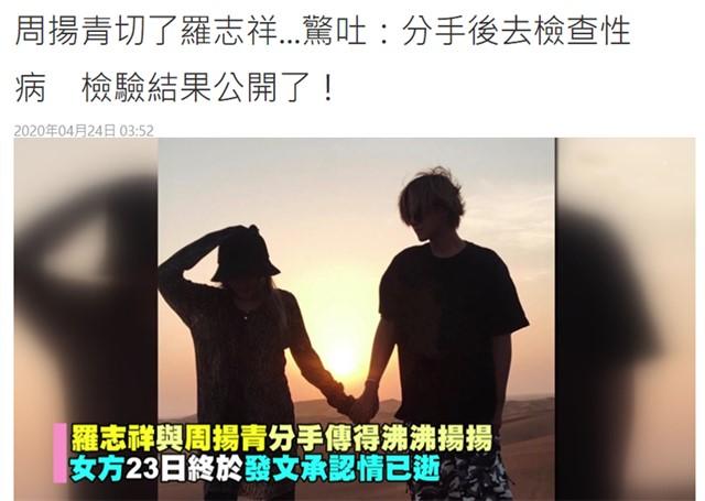 4月24日,据台媒报道,周扬青在自曝与罗志祥分手,更揭露男方恶行之后,有网友留言建议她应该要去检查X病,周扬青竟大方坦承已经检查过了,并公开结果,引发热