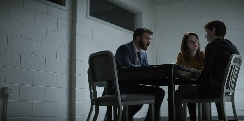 心事重重的眼神,正经威严的语气,克里斯·埃文斯在本剧中出演的检察官,在某些方面与美队非常相似,尤其是固执这点。