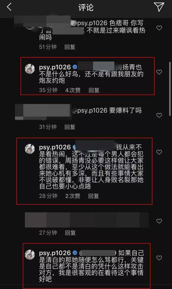 据悉,色痞称周扬青“也不是什么好鸟,还不是有跟我朋友的P友约P”!只是该爆料并没有什么真凭实据,随后色痞又补充道:“那是每个男人都会犯的错,周扬青也没必要这样做让大家都很难看,至少从这个做法就能看出来她心机深。”