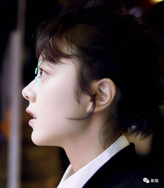 不过因为妹妹的鼻梁和额头高度足够,山根高度适宜,所以她的侧脸并没有明显眼球外凸的感觉。