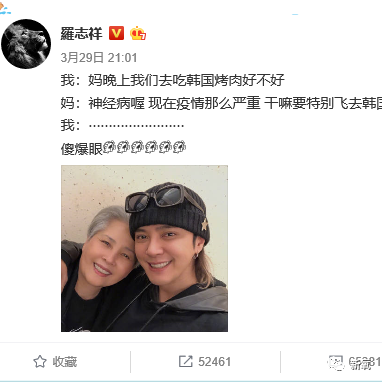 而罗志祥,真的很爱三个平台都发一样的内容,其中,以和麻麻的对话日常还有工作室宣传居多。