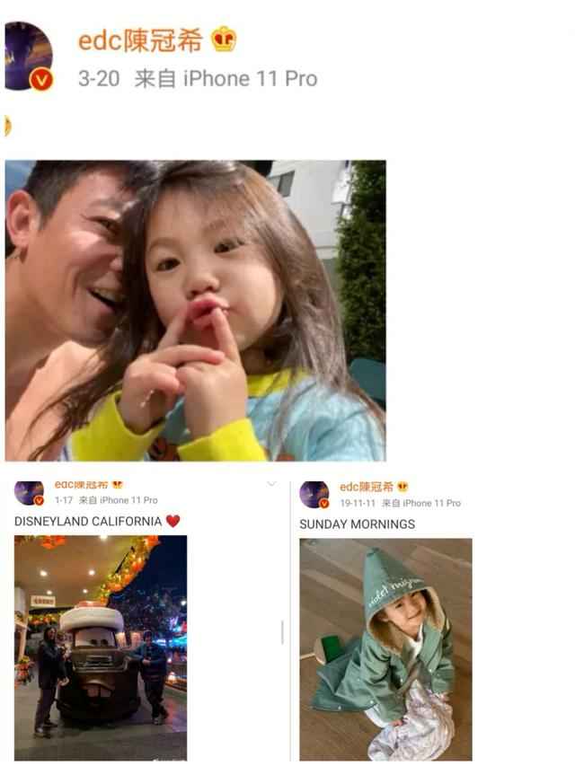陈冠希经常在社交平台上分享女儿的照片和一家三口的生活日常,秦舒培也在节目中也谈到说陈冠希非常宠自己和女儿,完全变成了一个女儿奴。