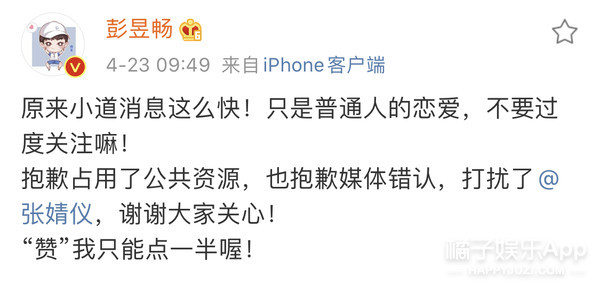 今天一早某媒体称拍到了彭彭疑似恋爱的锤,
