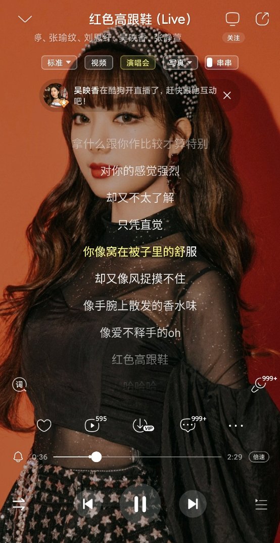有观众发弹幕说,刚刚还在酷狗听吴映香的《逆光》,然后一键跳转直播间,享受她的live现场,便由衷感叹酷狗音乐联动酷狗直播的功能太强大。每当歌手开播,歌迷们就能及时在酷狗听歌页面收到通知,再也不怕错过和爱豆的每一次互动了。