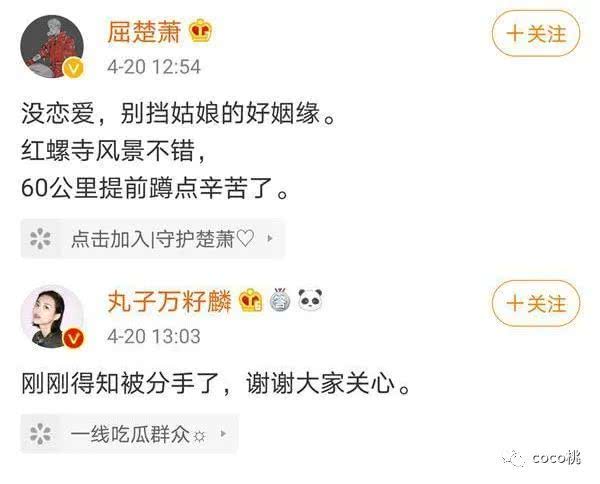 再对比一下前两天热搜上的屈楚萧,就算被拍到和女生亲密动作,也依然否认恋爱。女主角倒是很“刚”,直接说自己“被分手”。
