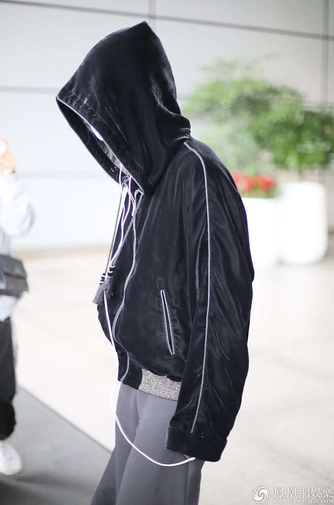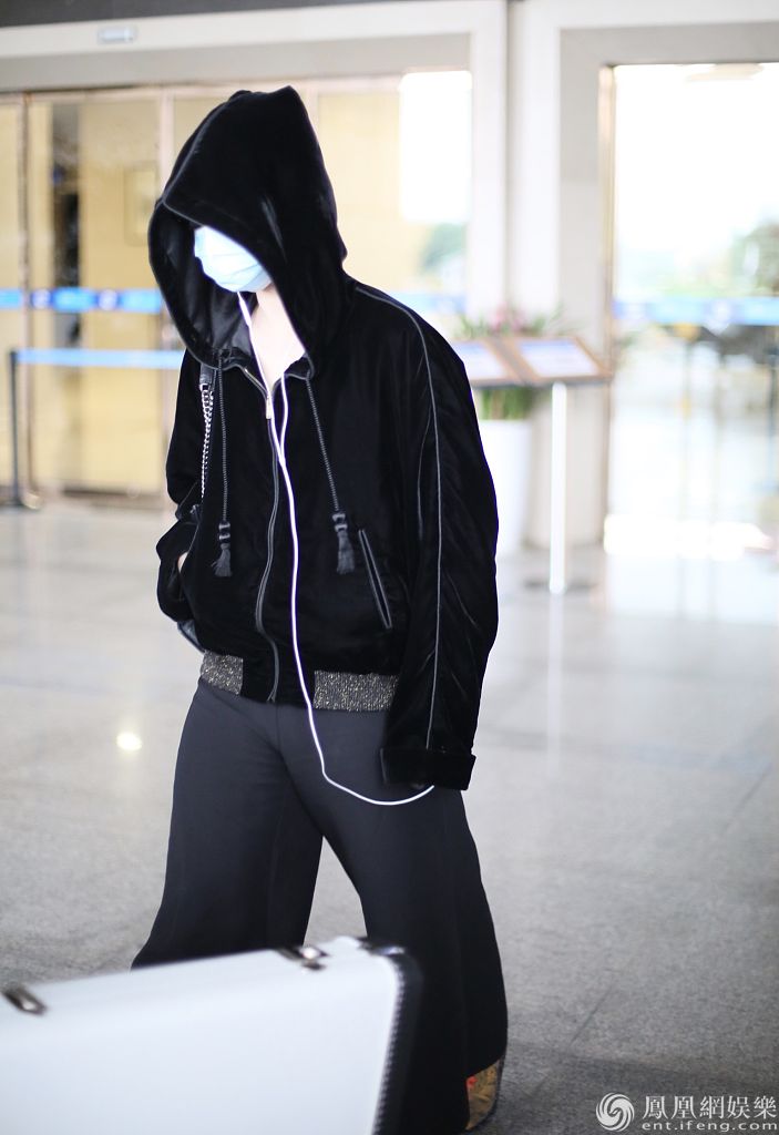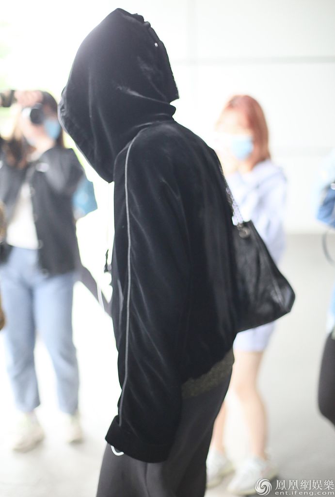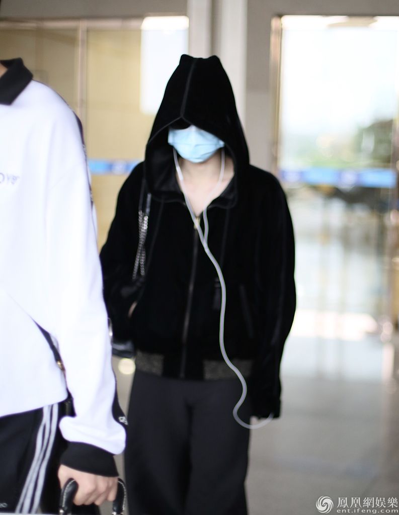 2020年4月23日,长沙,周震南现身机场。口罩遮面的他戴起帽子,一路低头听音乐,背着单肩包快速登上保姆