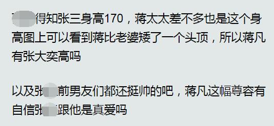 不过,一直深爱蒋凡的“花花董花花”却一直在拉高丈夫的形象,两人早年合照里,夫人要比蒋凡高一些,身高估计与张大奕差不多。