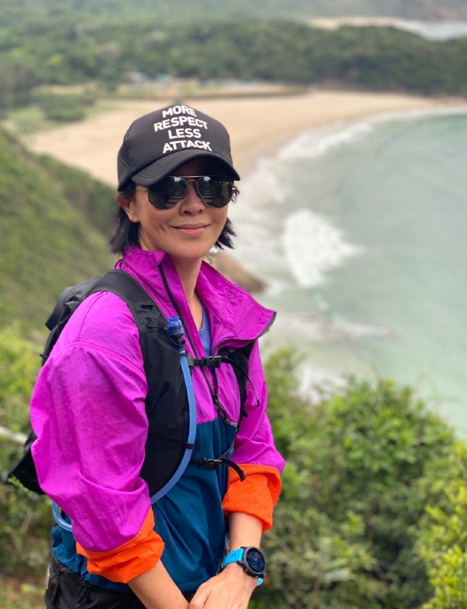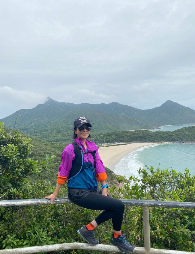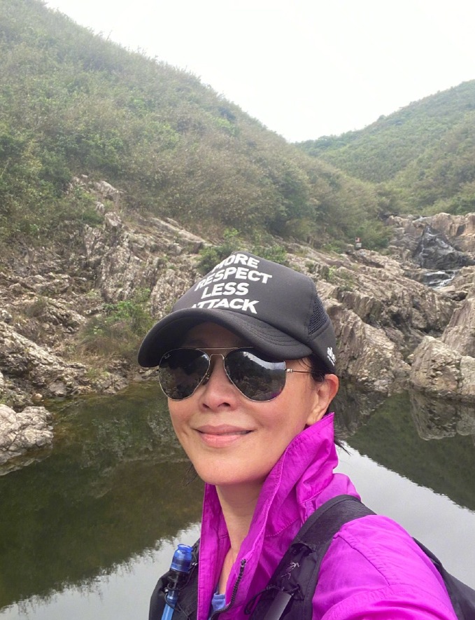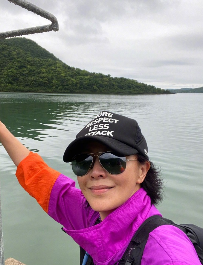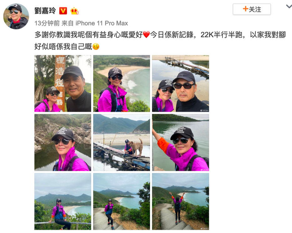 刘嘉玲登山晒照状态好。