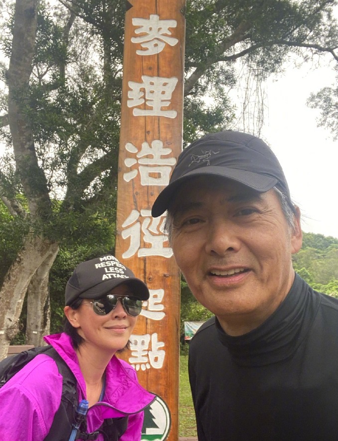 4月23日,刘嘉玲分享一组与周润发一起外出运动的近照,表示感谢周润发教自己这个有益身心的爱