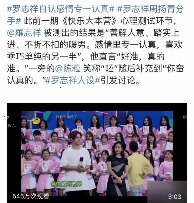 周扬青在社交平台上的发文爆料,彻底宣布结束了与罗志祥的九年恋爱。