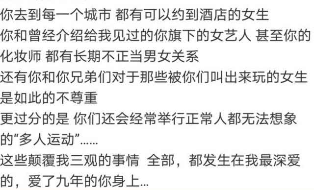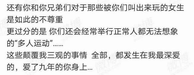 不是时间长了所以淡了,也不是一方累了所以放开,而是震惊所有人的男方出轨、且男女关系混乱。