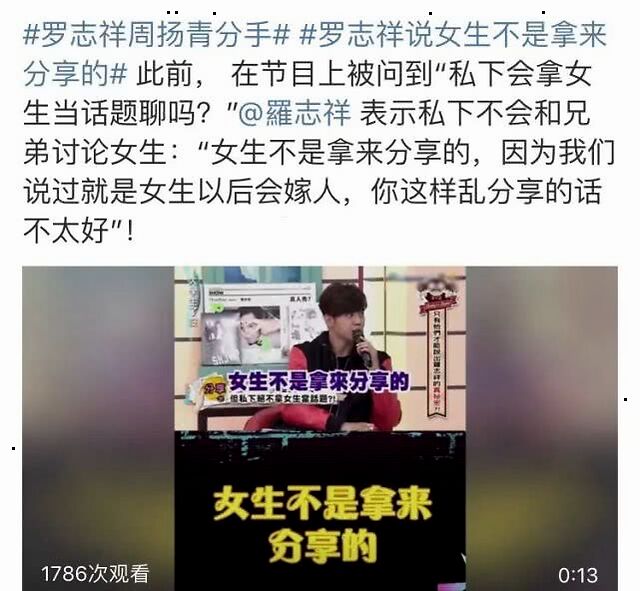 事情发展到现在,罗志祥过往的言论和形象,比如“女生不是拿来分享的”