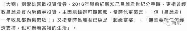 大刘曾这样说:“我亲自教吕丽君买债券投资,她一年收利息都过亿港元。”