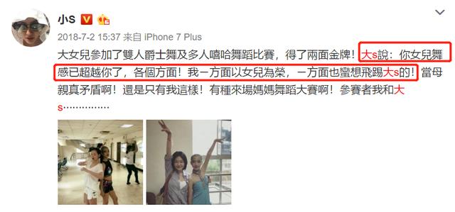 不仅是节目中,在私下生活里,小S也常遭到大S的吐槽,小S一向自认舞技了得,但是大S直言:“你女儿舞感已超越你了。”让小S又骄傲又想要飞踢大S,纠结的心太真实了,大S也是真的懂怎样戳到妹妹的痛。