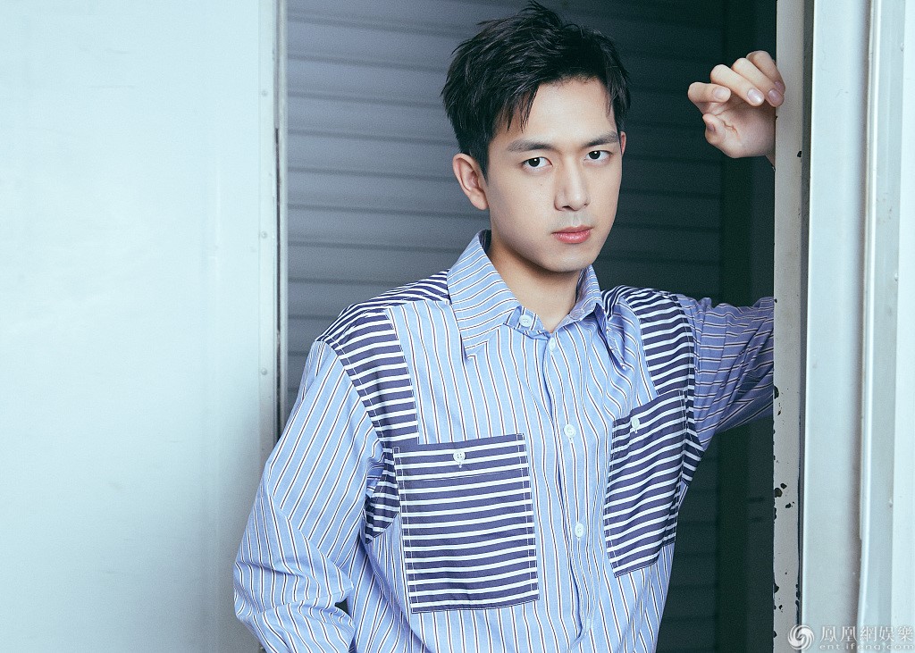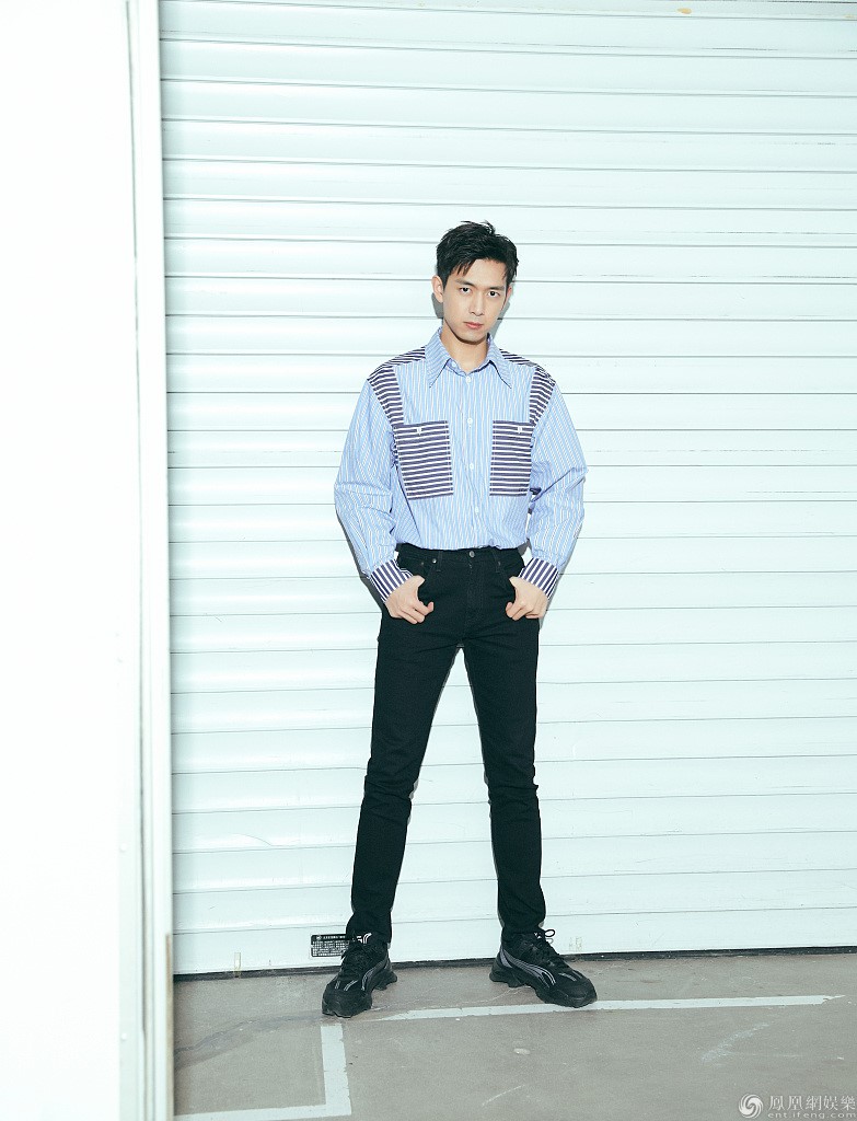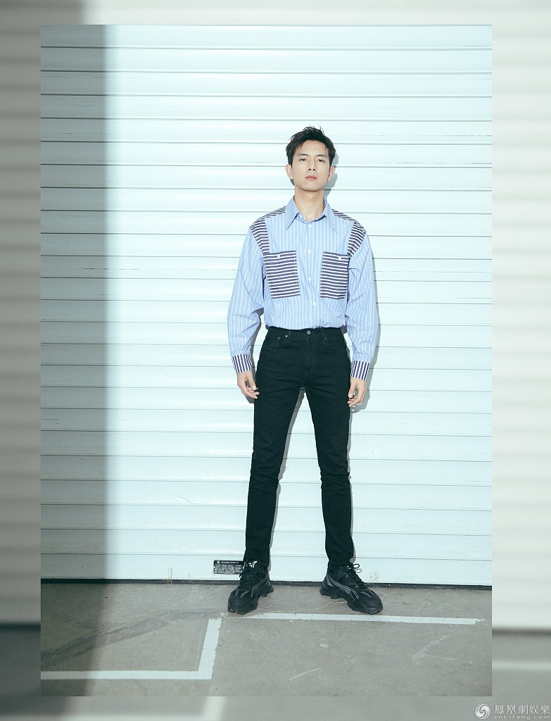 李习安穿着浅蓝色衬衫,清新帅气。