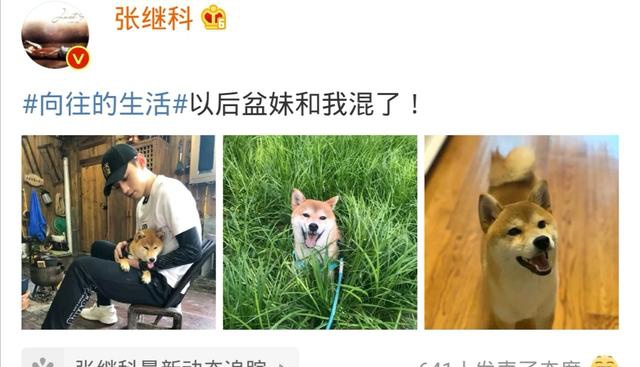 丹杰的微博上满是朴大哥的精彩片段。带朴大哥在落叶下散步。