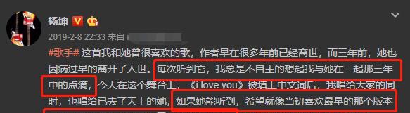 2019年,在“歌手”节目中,他演唱了《我爱你》,以纪念他的初恋。他还在深夜在他的社交网络平台上发布了深情的话语,说他“情不自禁地想起了三年后的点滴”,而且还是一个非常长期的人。