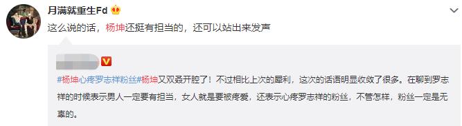 对于杨坤的“热情话语”和态度,广大网民也一致认为,与罗志祥的行为相比,杨坤是一个敢于承担的人。