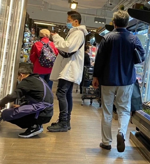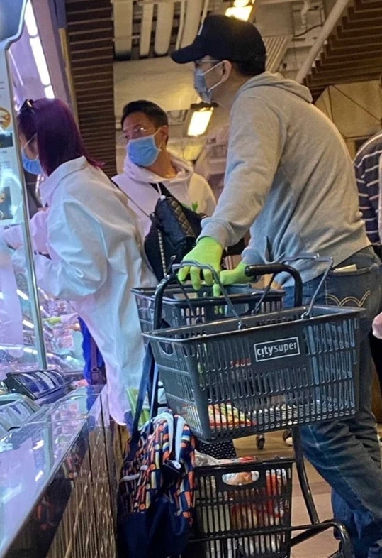 这对夫妇也穿着白色,不仅戴着面具,还戴着显眼的绿色手套。事实上,他们戴着眼镜,但是杨千嬅在超市没有戴眼镜,而她的丈夫和司机戴着眼镜。