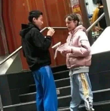 照片当中吴卓林的打扮像一个男孩子,穿着牛仔上衣和黑色长裤。她跟andi二人手牵着手十分甜蜜,吴卓林则摸着自己的后脑勺,显得有一点茫然。