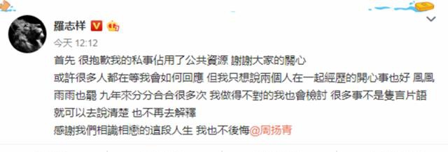 在周扬青发文后,罗志祥也对分手事情进行了回应,不过当时他却没有说出实际性的东西,网友统统不买账!