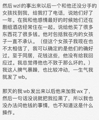 4月24日,屈楚萧前女友在社交账号上再度发声,爆料与屈楚萧恋爱期间发生的事情,并且还透露这段感情对自己精神上的伤害和影响很大,以至于很久都没有走出来。而自己在上次爆料屈楚萧事件之后想要与其好好沟通,但是沟通未