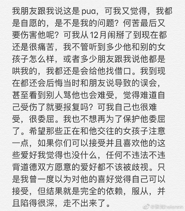 女生的朋友还告诫女生屈楚萧就是在PUA,女生甚至在发生这么多事之后还在怀疑是不是自己的问题,姑娘这就是在PUA啊!还好现在终于清醒过来了!
