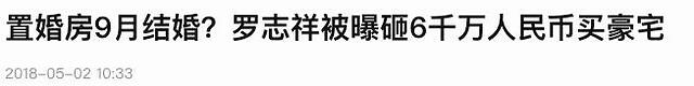 2018年的时候,媒体就盛传罗志祥已在台北内湖又买下两套房,并将两户打通,总值2.7亿台币(约合人民币6342万元)。此番大手笔购入新房,据说是为了将周扬青迎娶入门,提早打造两人爱巢。