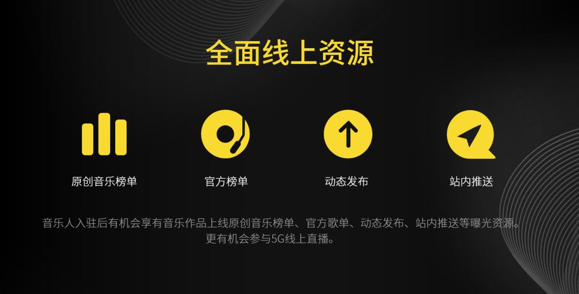 新定居的音乐家也可以获得专属的“新人才资源”。最新发布的单曲不仅有机会被列入“每日新音乐家单曲榜推荐”,而且有望被提升并作为“顶级音乐家单曲榜”出现在库沃音乐的首页,并有机会被列入音乐家专区的顶级音乐家推荐模块。