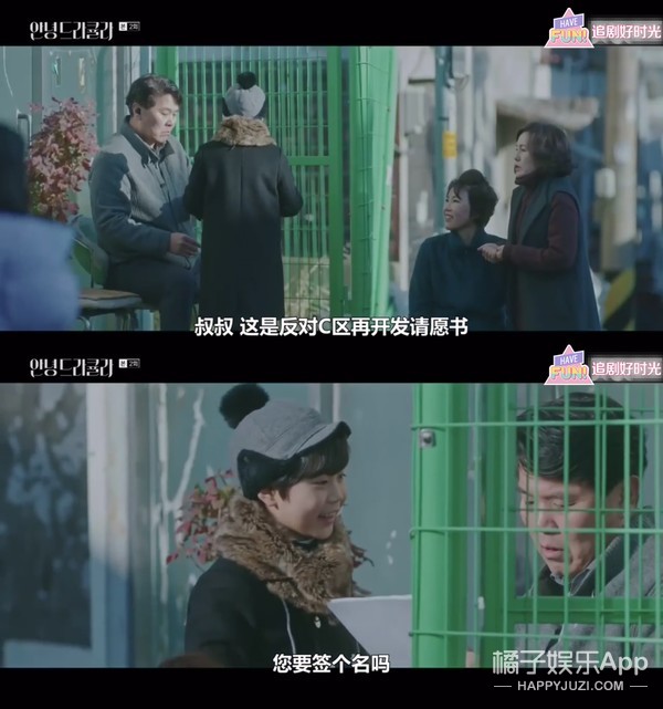 智亨不舍宥拉离开,学着做了一份反对开发C区的请愿书,拉着宥拉跟他一起在街上找居民们签字,