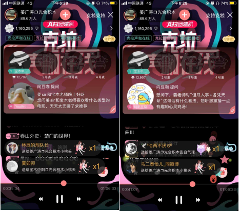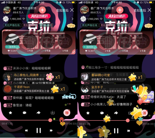 当晚8点,蒋光涛和包慕忠准时出现在克拉拉的工作室。期待已久的粉丝们表达了他们对接二连三的两位演员的爱。现场直播的气氛很热烈。在粉丝们的热情影响下,两位老师回答并满足了粉丝们提出的各种问题和要求。他们不仅和粉丝们分享了配音《大鱼海棠》的乐趣,还透露了他们的配音工作,让粉丝们很期待。随着越来越多的观众涌入演播室,两位老师还热情地向粉丝推荐了好电影和书单,然后现场表演了经典人物的台词,让粉丝们大饱眼福。