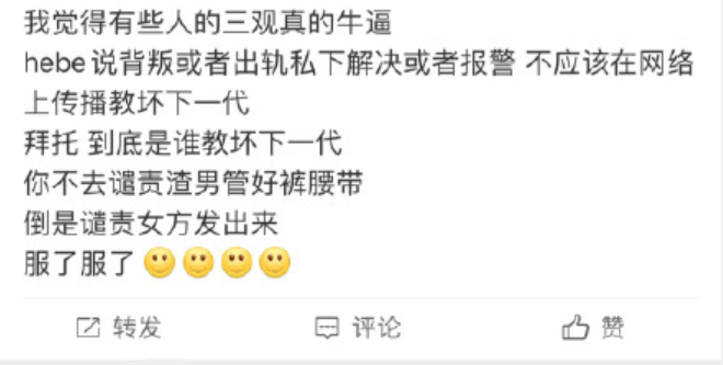 例如,赫布今天转送了一个“逆风”。有人认为,周扬青的行为属于“爱情报复”,不应该“利用互联网来惩罚以前的恋人”,这已经收到了很多争议。
