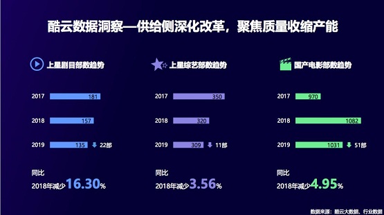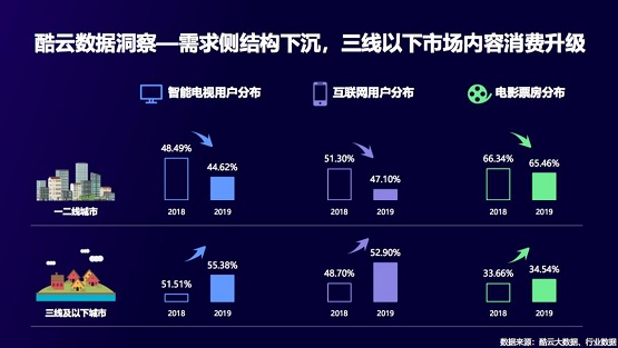 李鹏说,从供应方面来看,电影和电视行业正在关注质量和缩小生产能力。目前,剧目和种类呈逐年下降趋势,2019年国产电影也将下降4.95%。从需求方面来看,低迷市场中的内容消费正在不断升级。与2018年相比,三级及以下城市智能用户比例提高了3.85个百分点,互联网用户比例提高了4.2个百分点。与其他媒体形式相比,低迷市场的用户尤其喜欢电视媒体,可以说是“更低迷,更电视”。